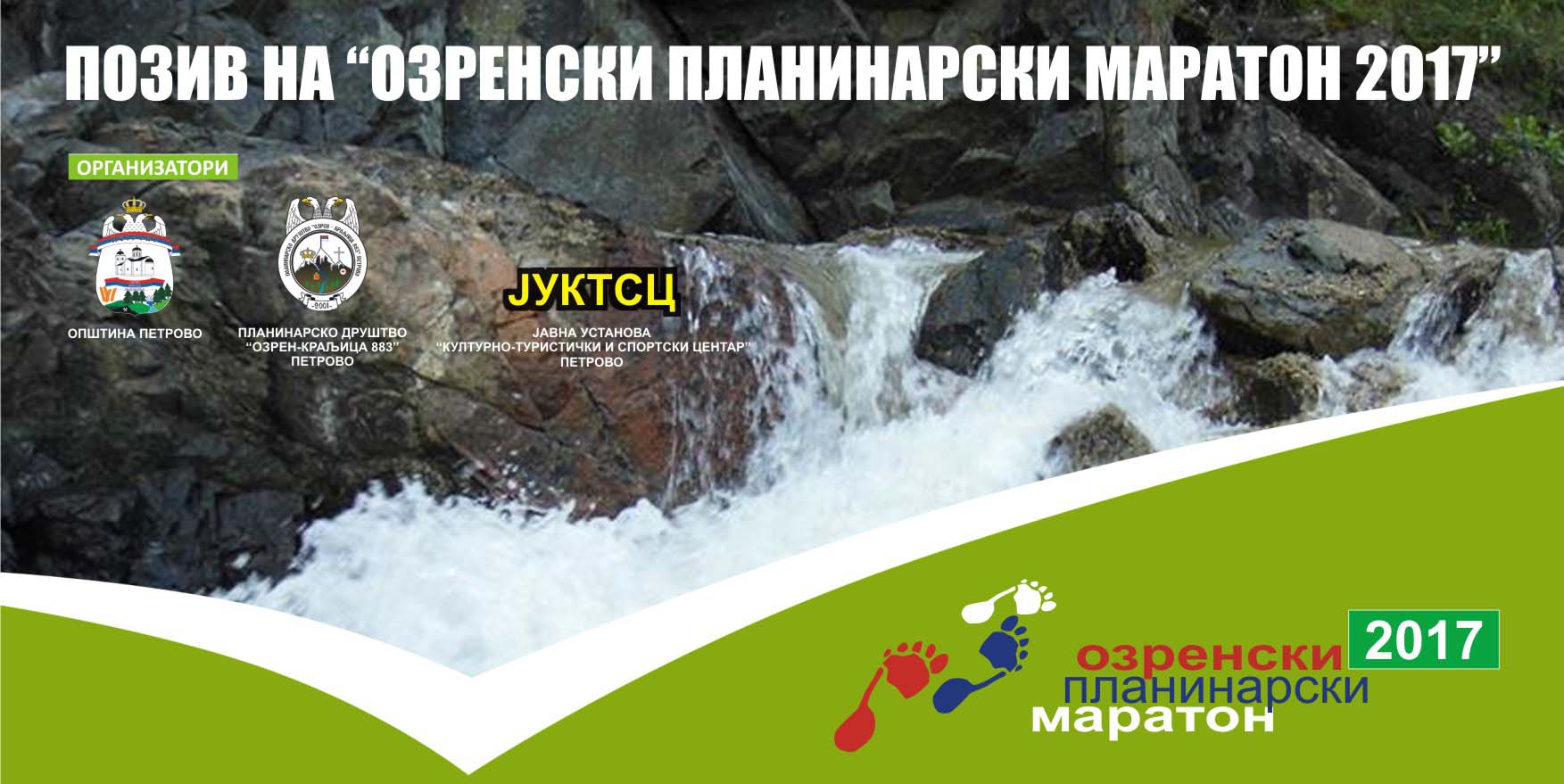 Poštovani planinari, atletičari, maratonci, biciklisti i svi ostali sportisti i ljubitelji prirode, pozivamo Vas na Ozren, na 13. međunarodni „Ozrenski planinarski maraton 2017“, koji će se održati od 2. do 4. juna 2017. godine na prostoru planine Ozren.