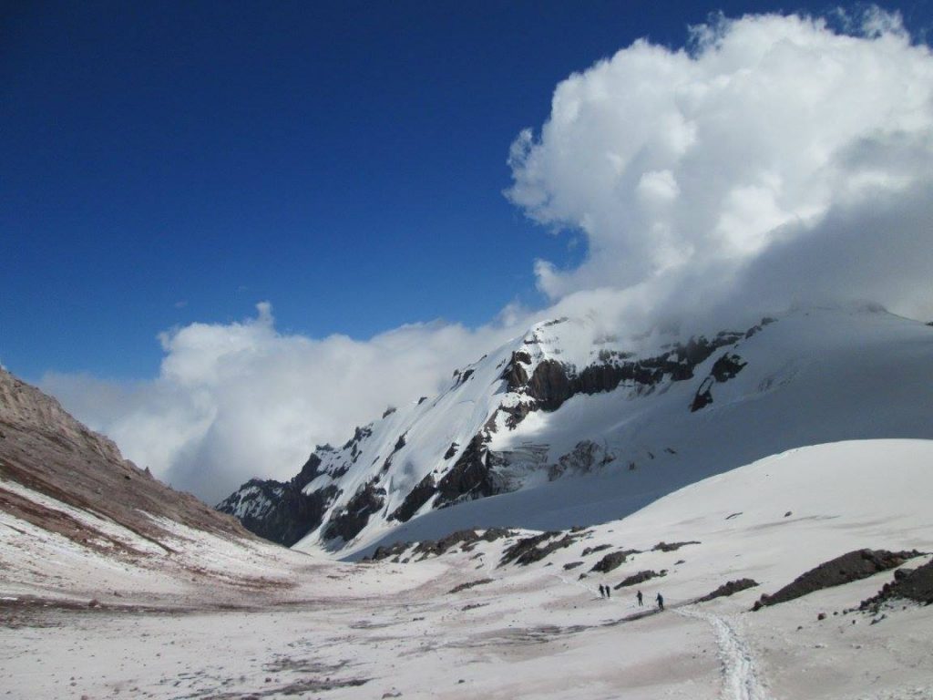 Posle 3.000 km puta, sa zakasnjenjem stizemo 5. jula izjutra u selo Kazbegi, odakle odmah krećemo na pešačenje ka planinarskom domu Biethemi (3.650 m). Krenuli smo odmah nakon dugog puta, kako bi se držali plana, pa zbog toga je bilo jako naporno preći tu visinsku razliku od 2.000 m. Velike rančeve su nam nosile mule, do jednog glečera. Od tog glečera imali smo još 500 m visinski da pređemo do doma sa svim stvarima na leđima. Bio je to najnaporniji deo. Ali kasno uveče stižemo u dom gde smo prenoćili. Sledećeg dana imali smo laganu aklimatizaciju na 4.000 m, posle čega se vraćamo u dom kako bi se odmorili za završni uspon.