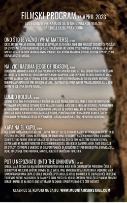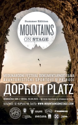 U sredu 26. aprila 2023. sa početkom u 19 časova, premijerno u Beogradu, u jedinstvenom prostoru Дорћол Platz, Dobračina 59b, predstavlja se međunarodni festival dokumentarnog filma ’’Mountains on Stage’’. Događaj za sve zaljubljenike i poštovaoce aktivnog načina života i prirode, kako rekreativce tako i profesionalne sportiste.